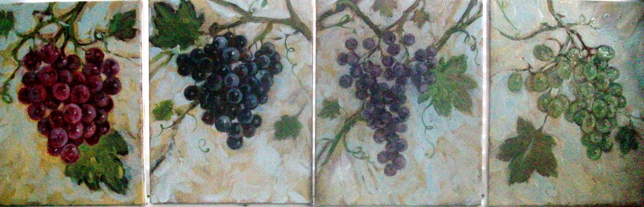 This set of four paintings is my first attempt at getting back into the game of licensing. I have an amazing agent who believes in me and hangs in there with me no matter what is going on in my life. She told me to start small. We decided I would paint grapes. I sketched them out in charcoal first and sent off a jpeg; but in black and white they all looked the same. So she told me to put in some color and she’ll take another look.