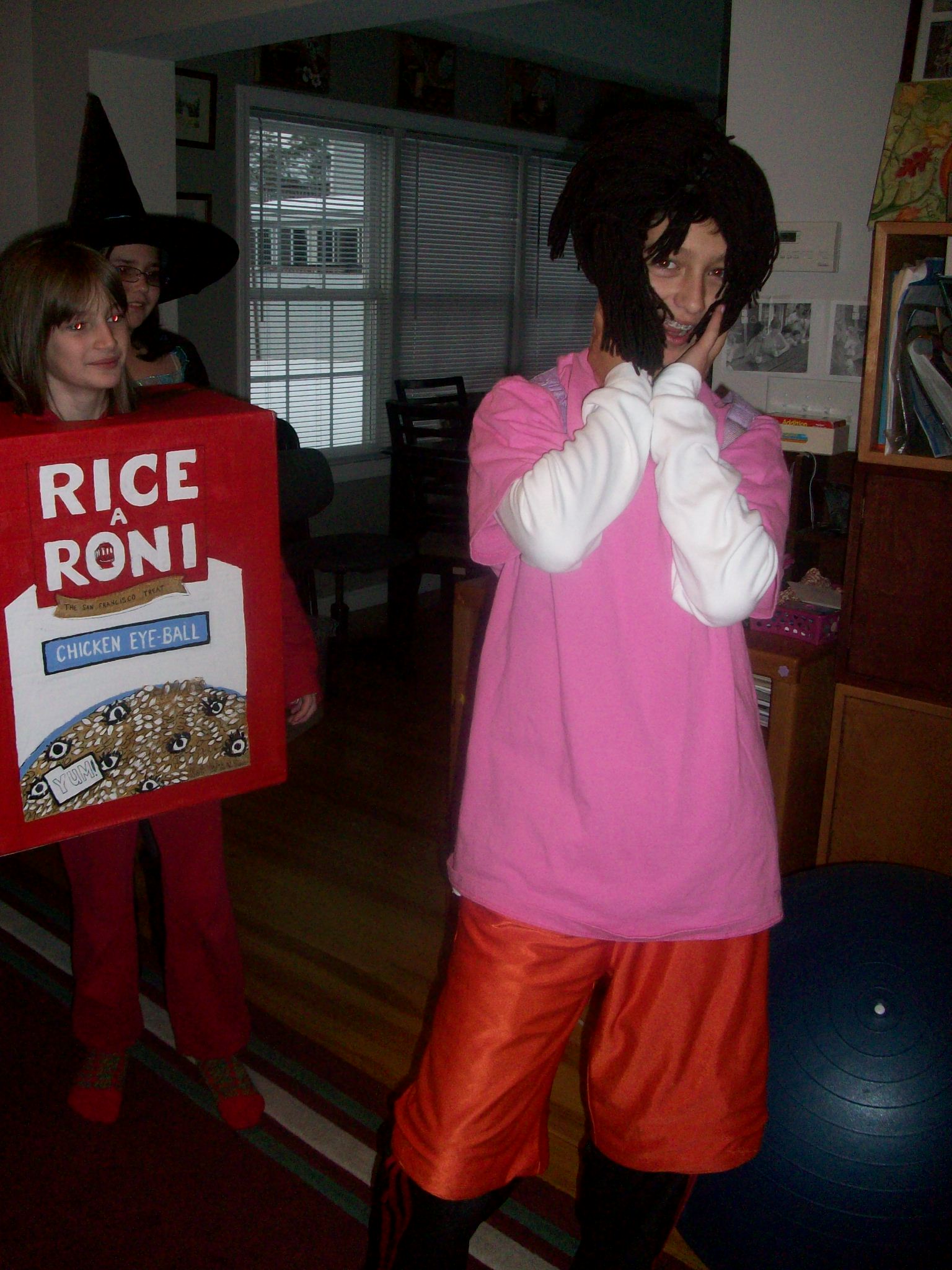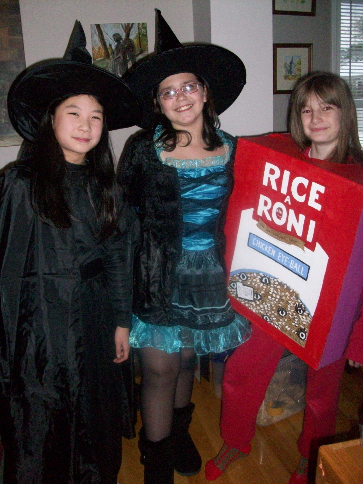 Halloween this year landed on a Monday. My daughter decided weeks ago that she wanted to be a box of rice. Rice a Roni – chicken eye ball flavor!