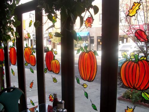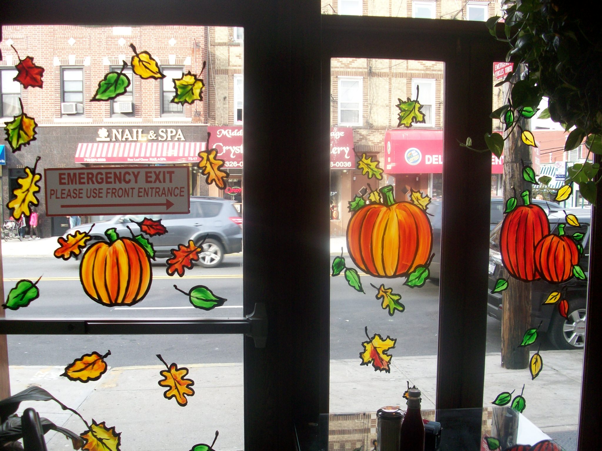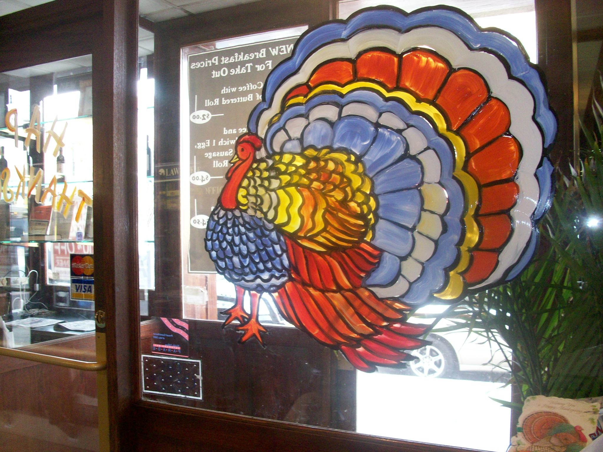 This is Metropolitan Diner in Middlevillge, Queens. My friend George, who owns the restuarant with his family, asked me to paint Thanksgiving windows. I painted them last Thursday, November 3rd.