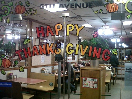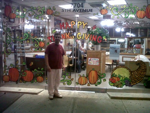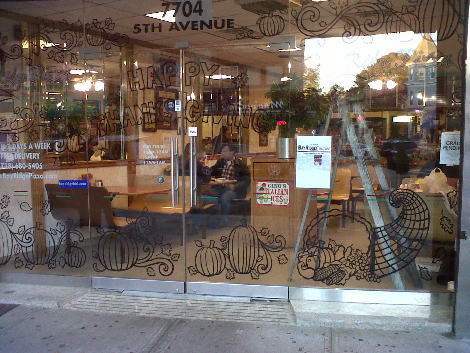On Saturday, November 5th, I drove to Bay Ridge Brooklyn. My friend Gaspar owns Bay Ridge Pizza on 5th Avenue. He was a new client from last year. One of the best things about painting his windows is that when I am done I get to eat whatever I want from the menu. Don’t let that big Pizza sign fool you. He has some of the best Italian dishes around.