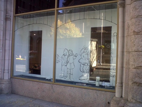 The Federation of Protestant Welfare Agencies is headquartered on Park Avenue between 21st and 22nd street in Manhattan. Tim, the development communications manager, saw my window painting at Bay Ridge Pizza in Brooklyn.