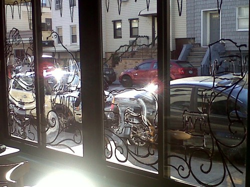 He is a steady customer for the last four years. I started about 4 and finished up about 8pm. This is what the windows look like inside after dark.