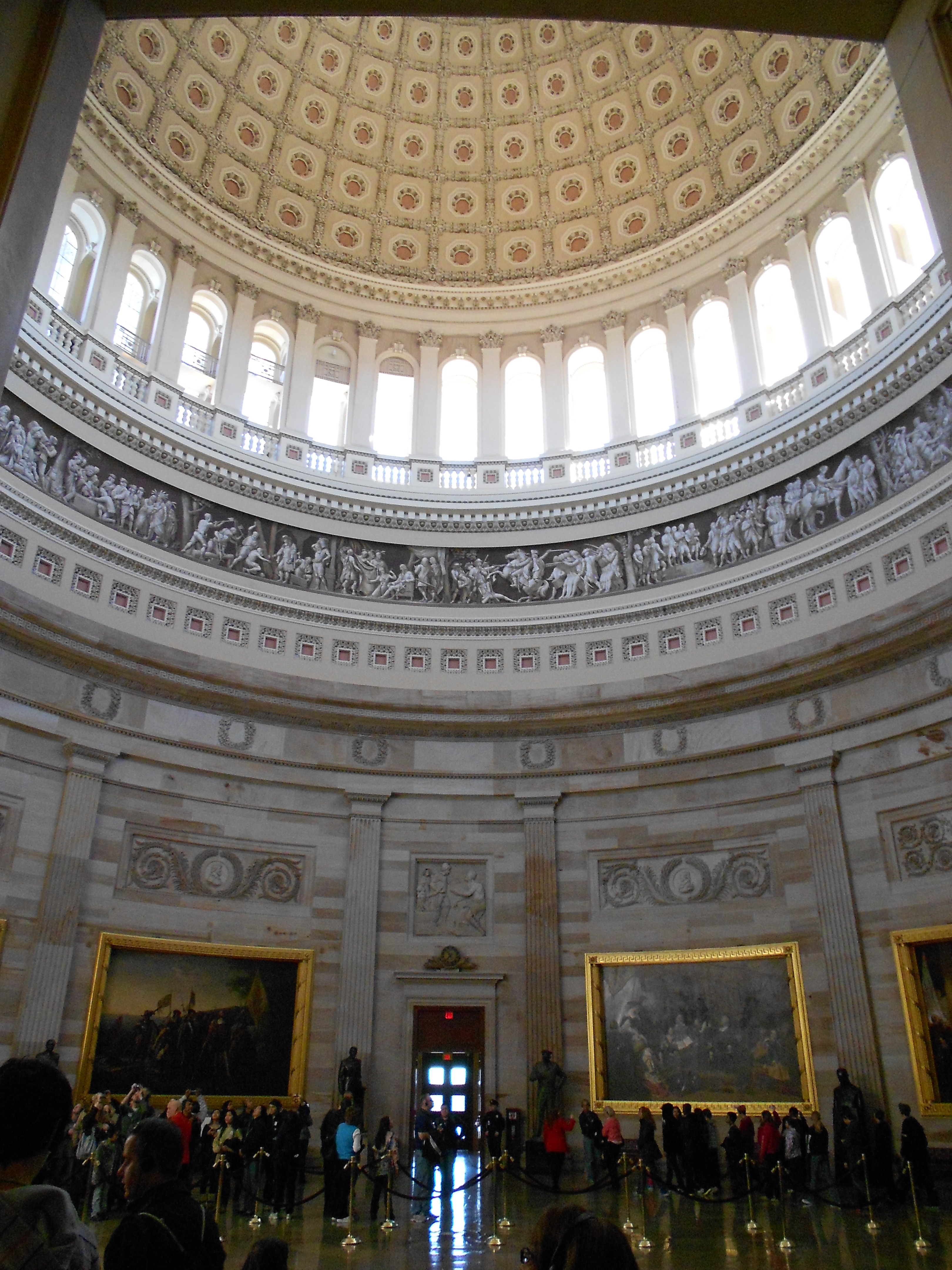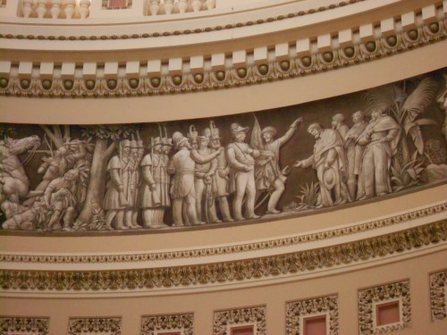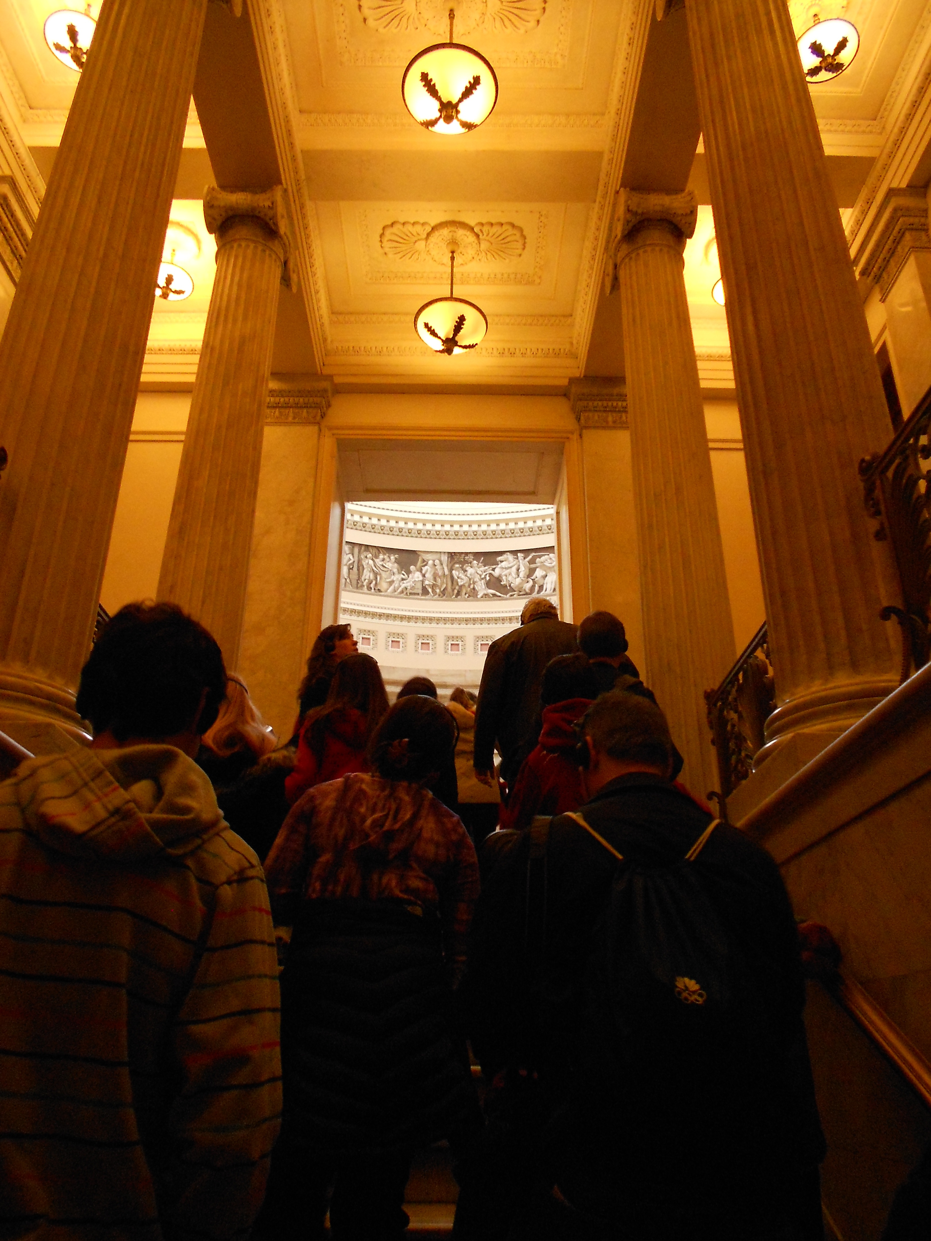 Outside, things were pretty quiet. Inside, our eyes feasted on such splendid and spectacular decorum. The best artists and craftsmen from around the world during it’s 200 year history were and have been hired to create the fine art work that adorns the walls and hallways of our Nation’s Capital. Below is the entrance lobby.