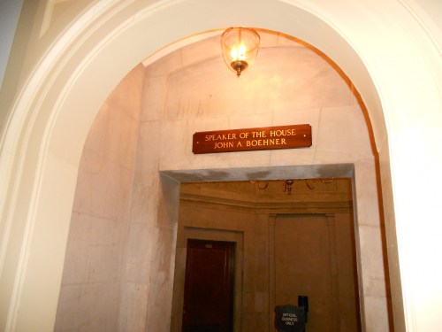 Each branch of Congress is housed in their own part of the building. The senate in the adjoining rectangular building to the right, and the House in the adjoining building to the left. Or is it vice-verse? Either way, if you are the speaker of the House you get your name up in the door way.