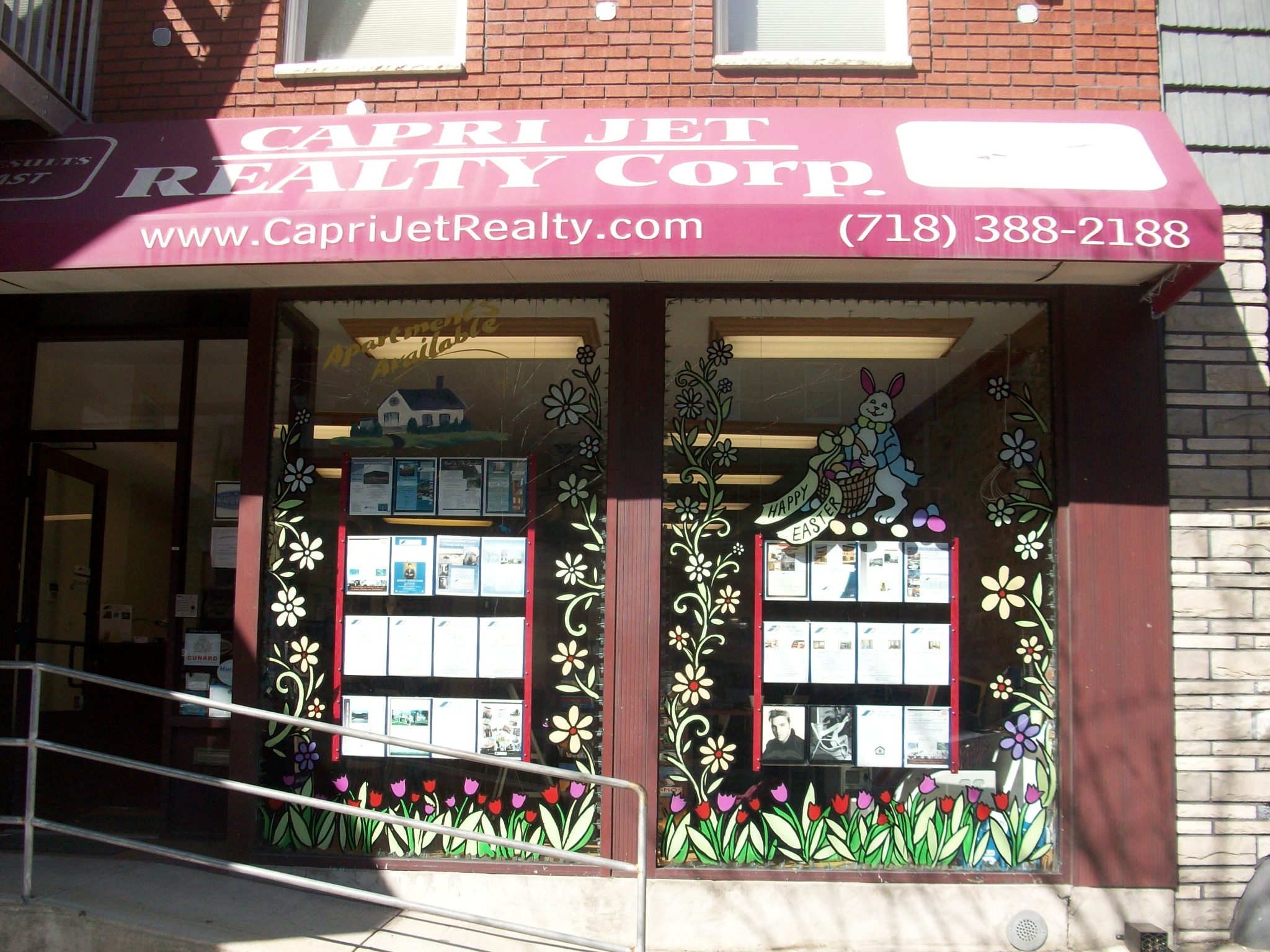 These are the windows at Capri-Jet Realty Corp. in Williamsburg, Brooklyn. I have known Robert, the owner, for twenty years. Twenty years ago he was known as Capri-Jet Travel Agency. Some of my best work painting on windows was at his place of business. Now a days, travel agents are all but extinct due to the internet and major travel web sites.