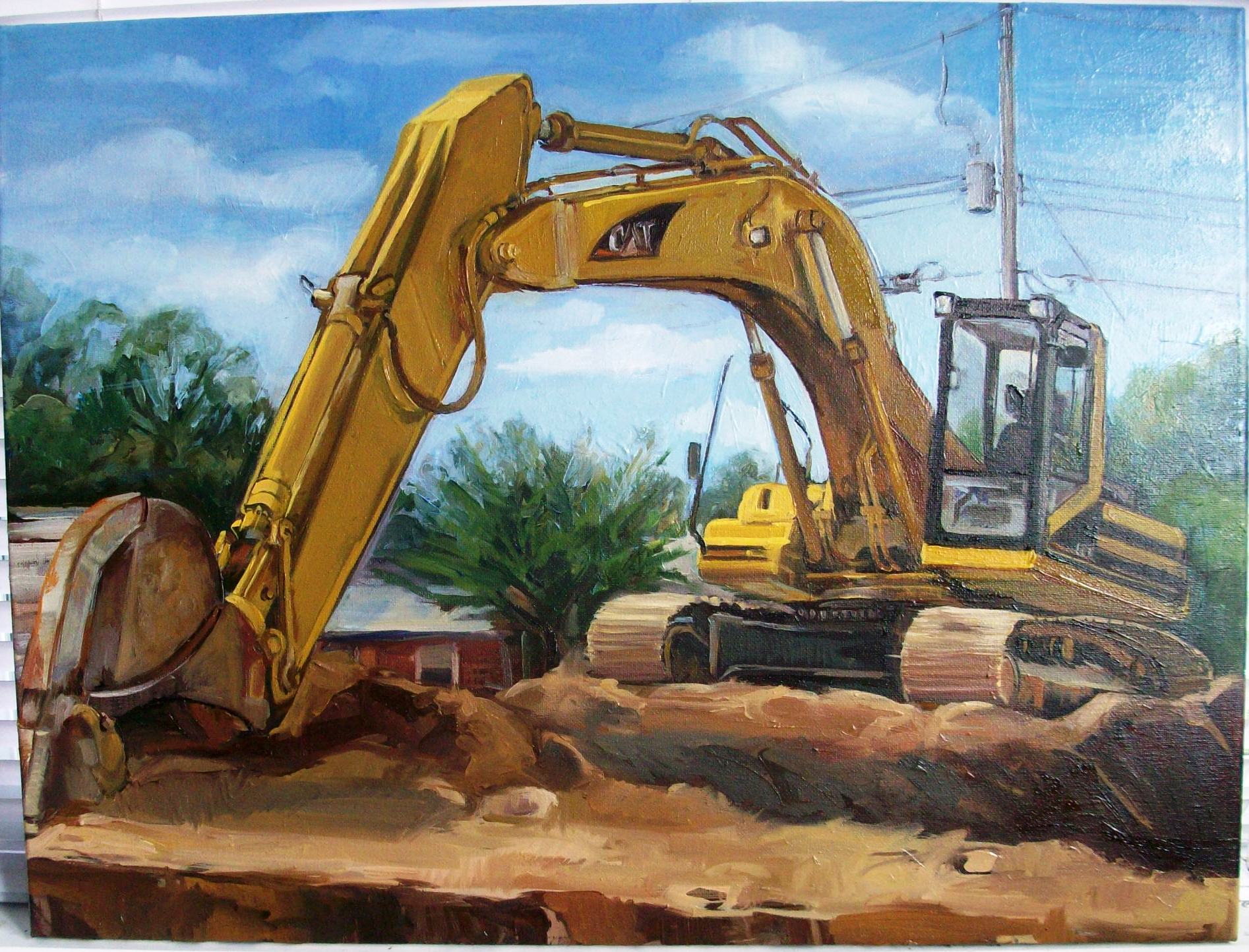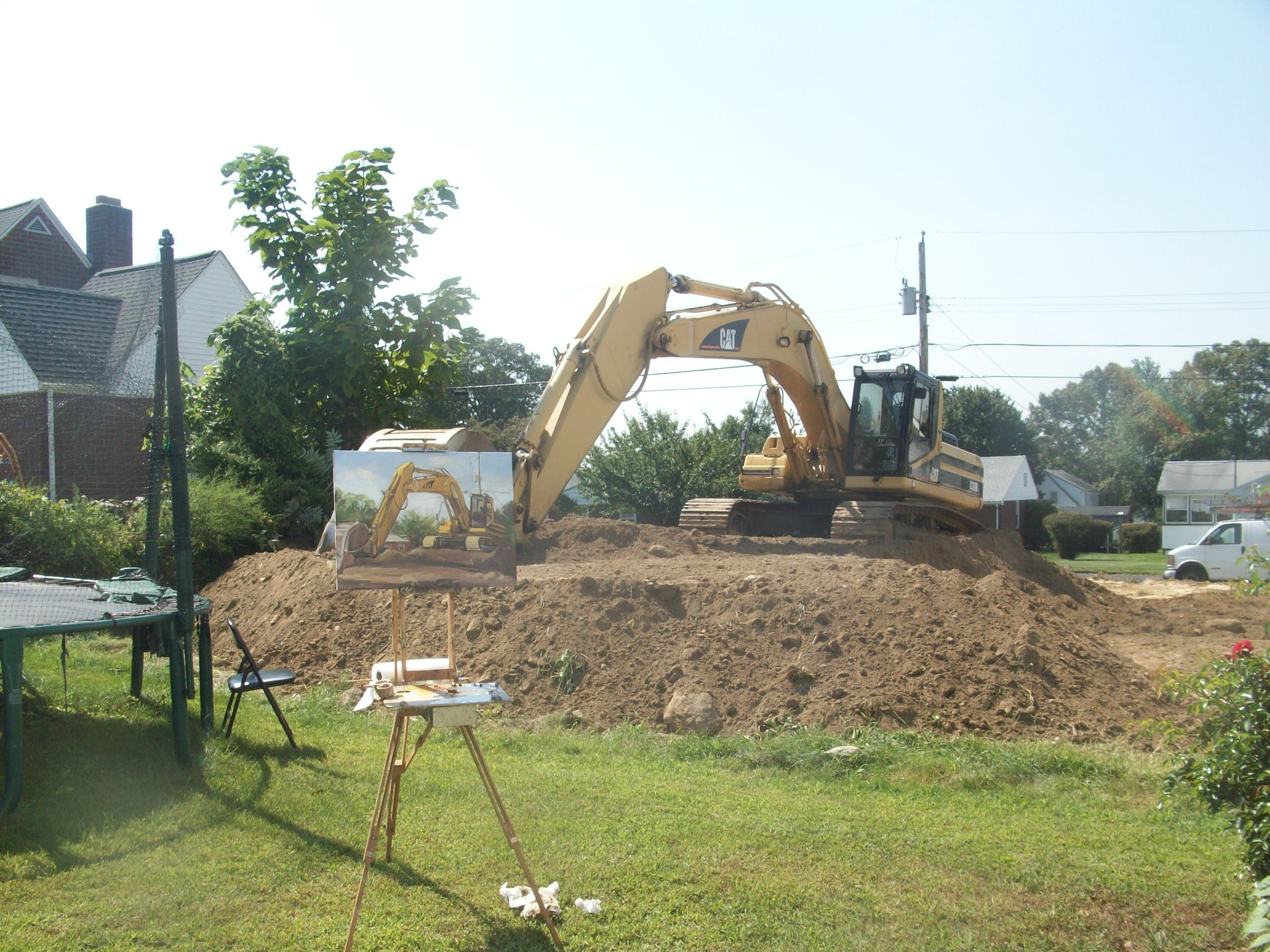 A few days later I asked the builder if he had a moment. I went inside, brought out my two paintings and showed him. “Can you please call the backhoe guy and have him turn it back around? You see this one is not done.” The builder of the first house, “Ron the builder” said the owner of the backhoe is mad at him. “Why?” I asked. ” Because we aren’t going to use him anymore, but I’ll make a call.” “Thank you.” I went back inside. To this day, the backhoe has not been moved back.