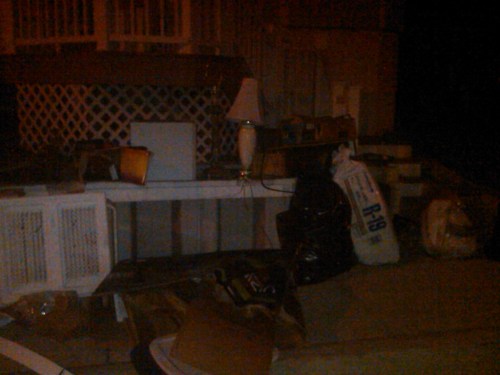 When the storm surge came through his house he was in the hospital. Good thing because he’s in a wheel chair. The water line came up fast and furious-about 4-5 feet high and that would have gone well over the top of his head.