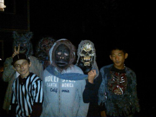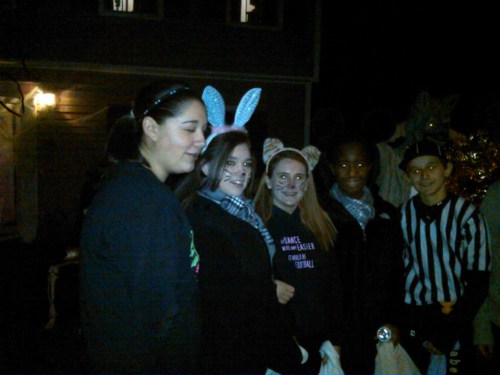I am lucky that my lost middle child is very flexible. He was happy to borrow a mask and trick or treat with a dozen of his fellow Freshman com-padres