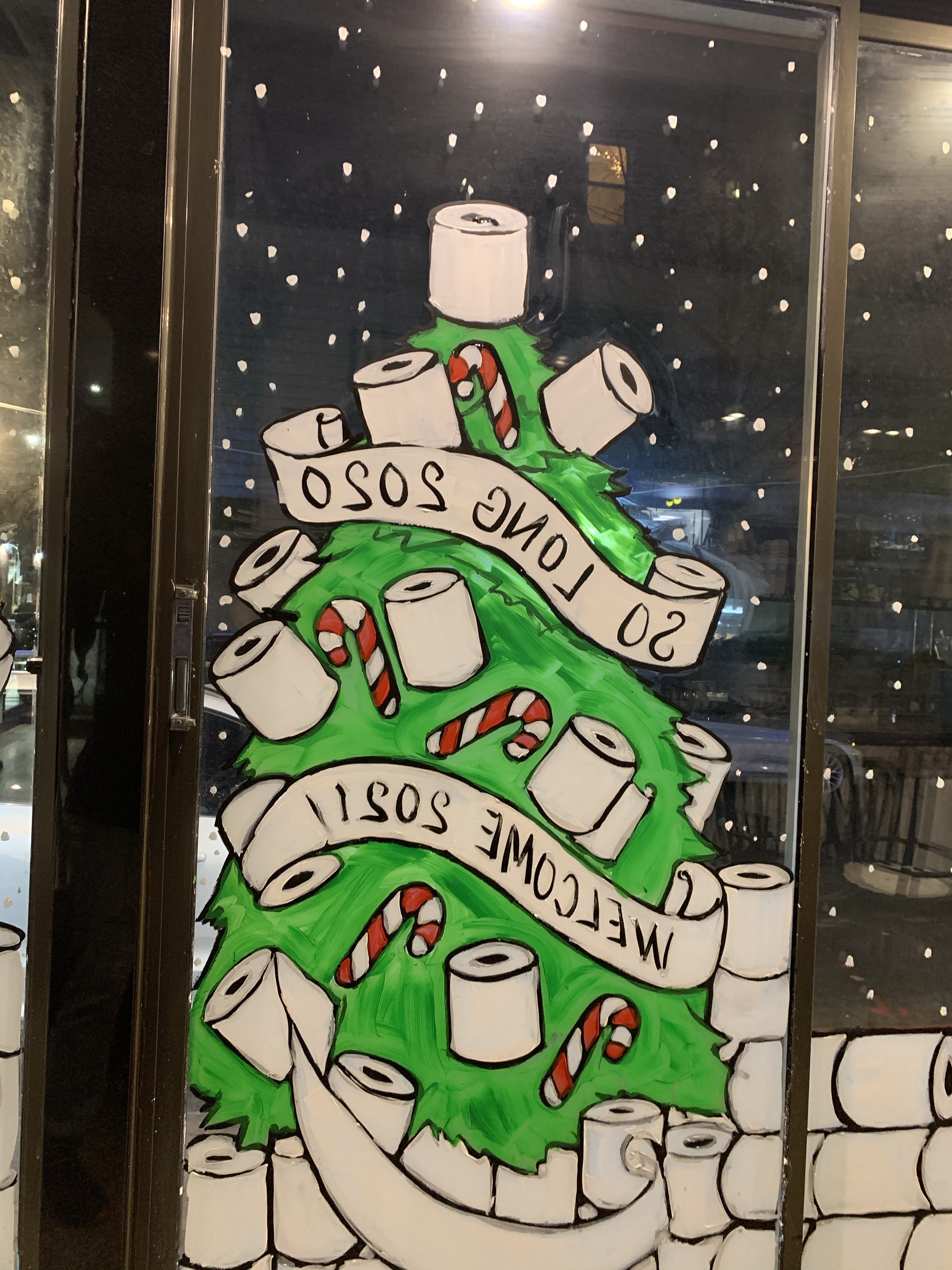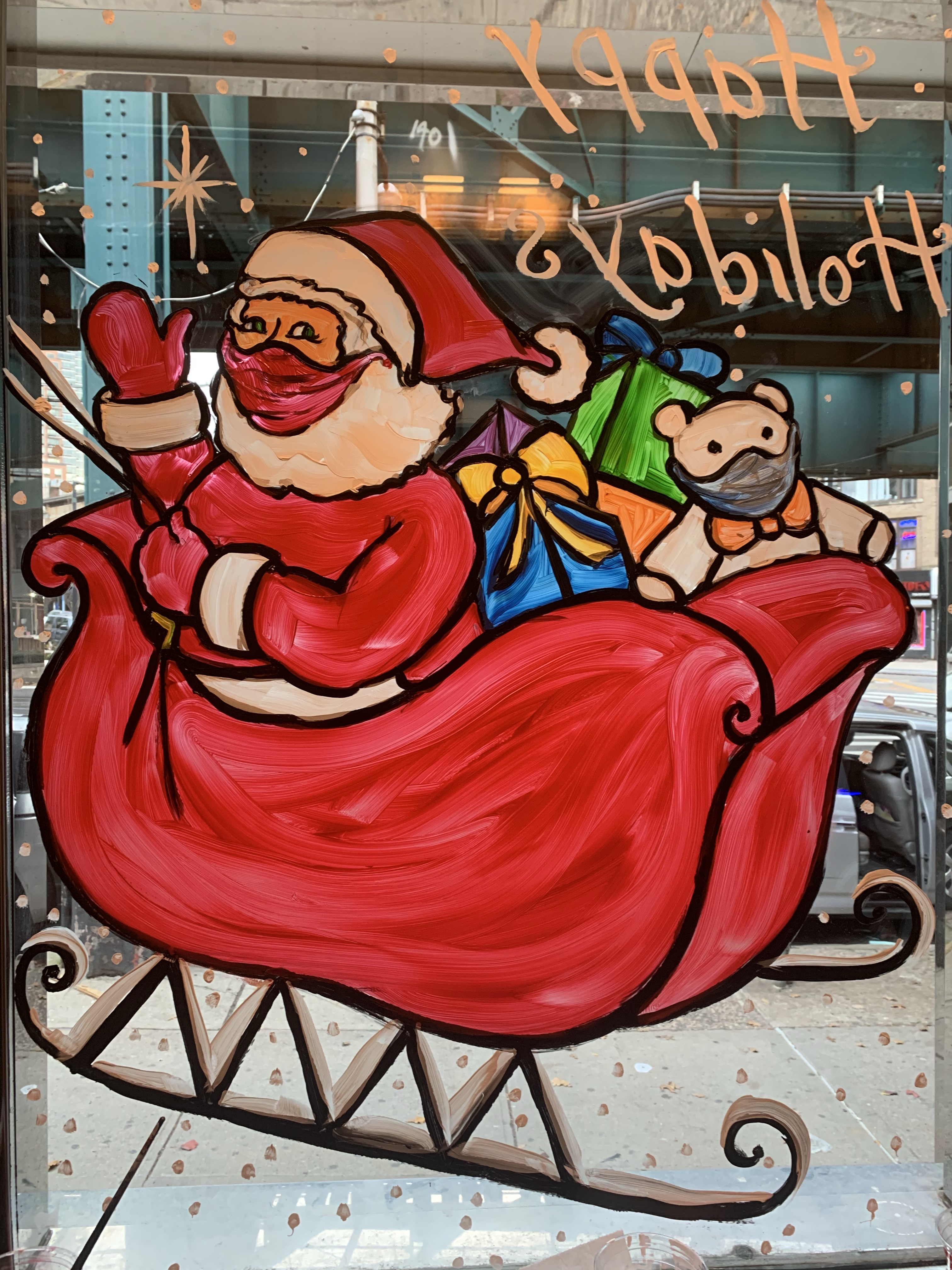 Mine was a mixed bag that’s for sure. I barely painted 30% of my normal Christmas and holiday windows. I had Zero windows in Manhattan, 4 places in Brooklyn, 4 in Queens; that was it!