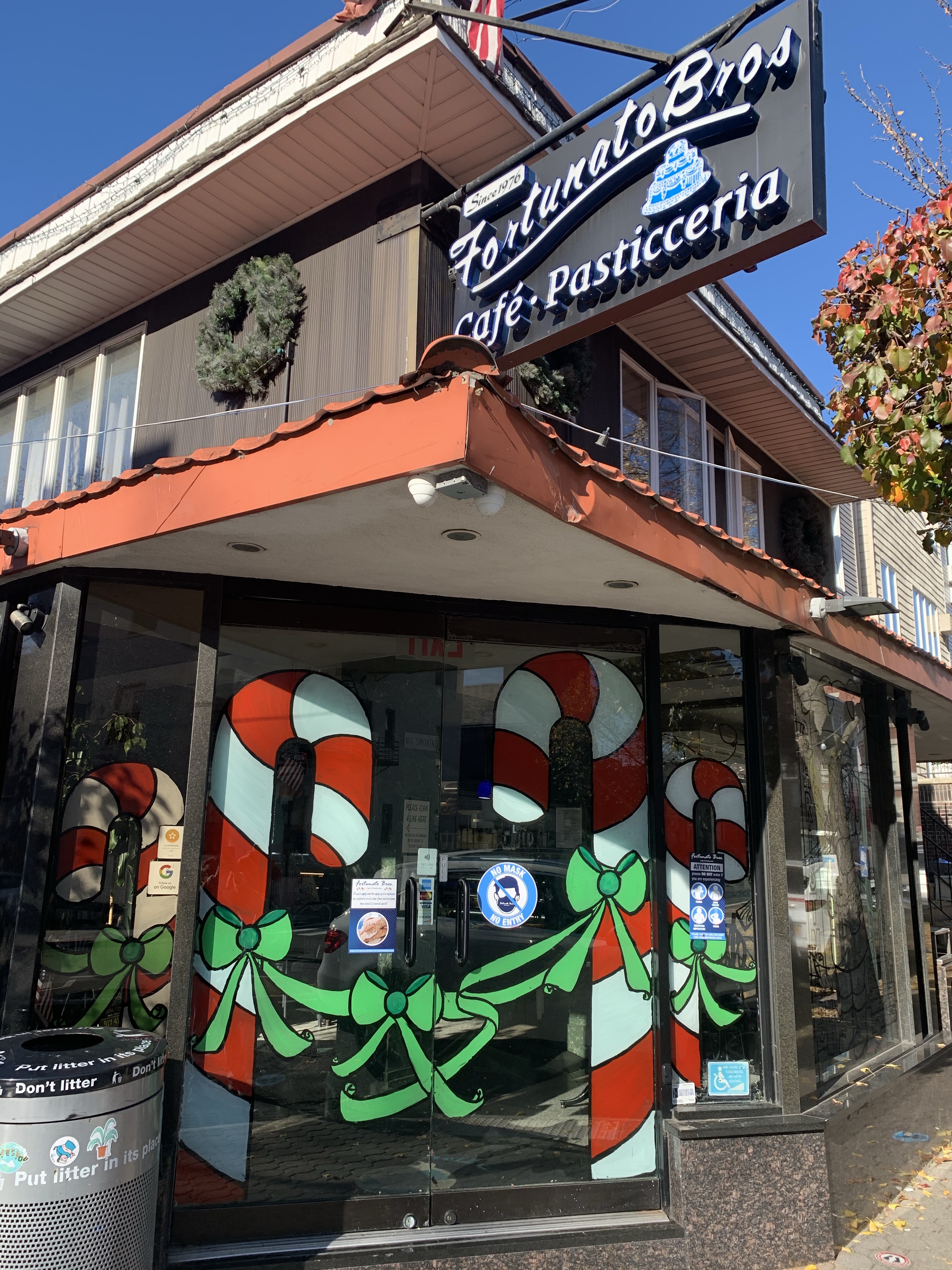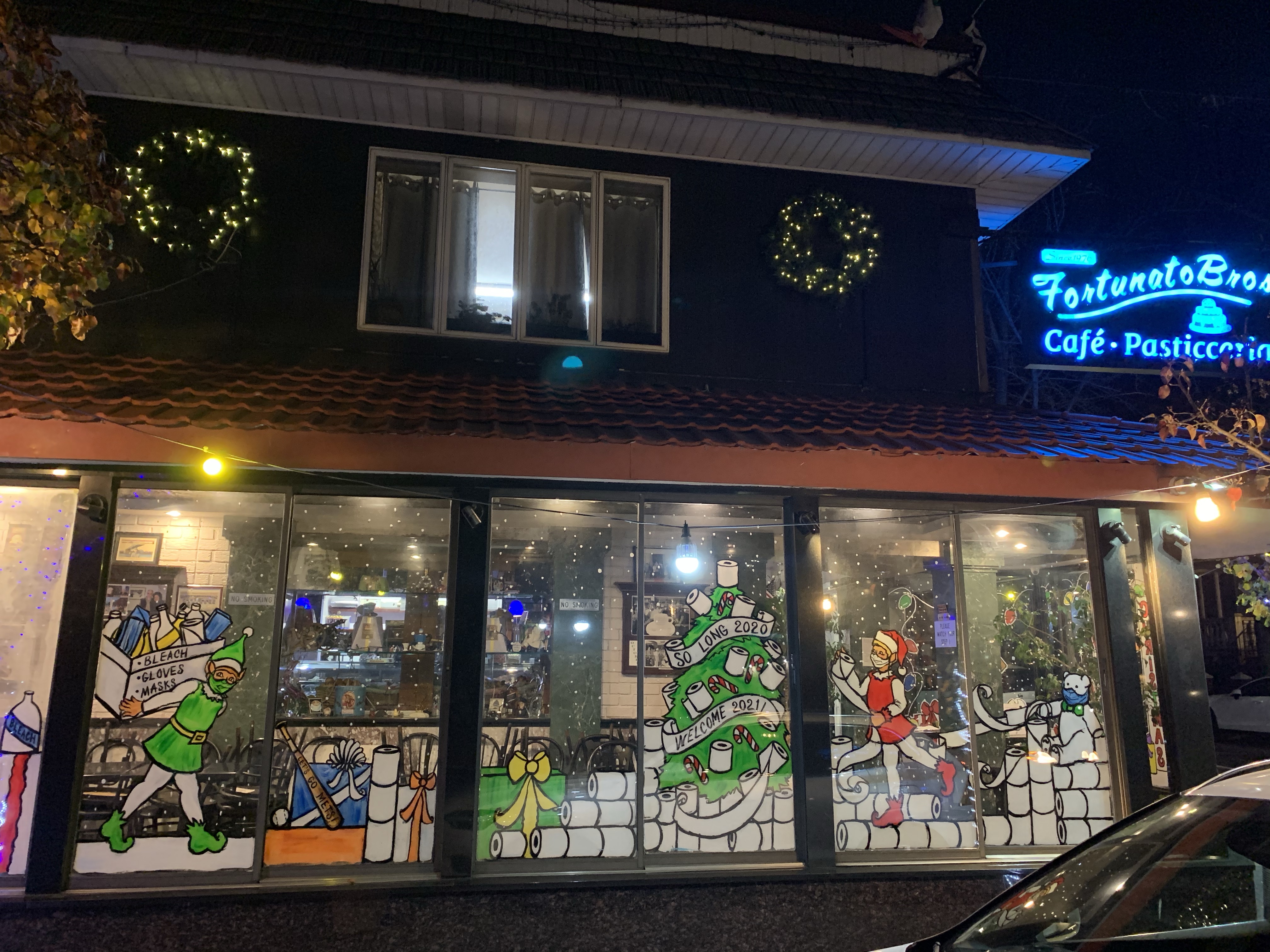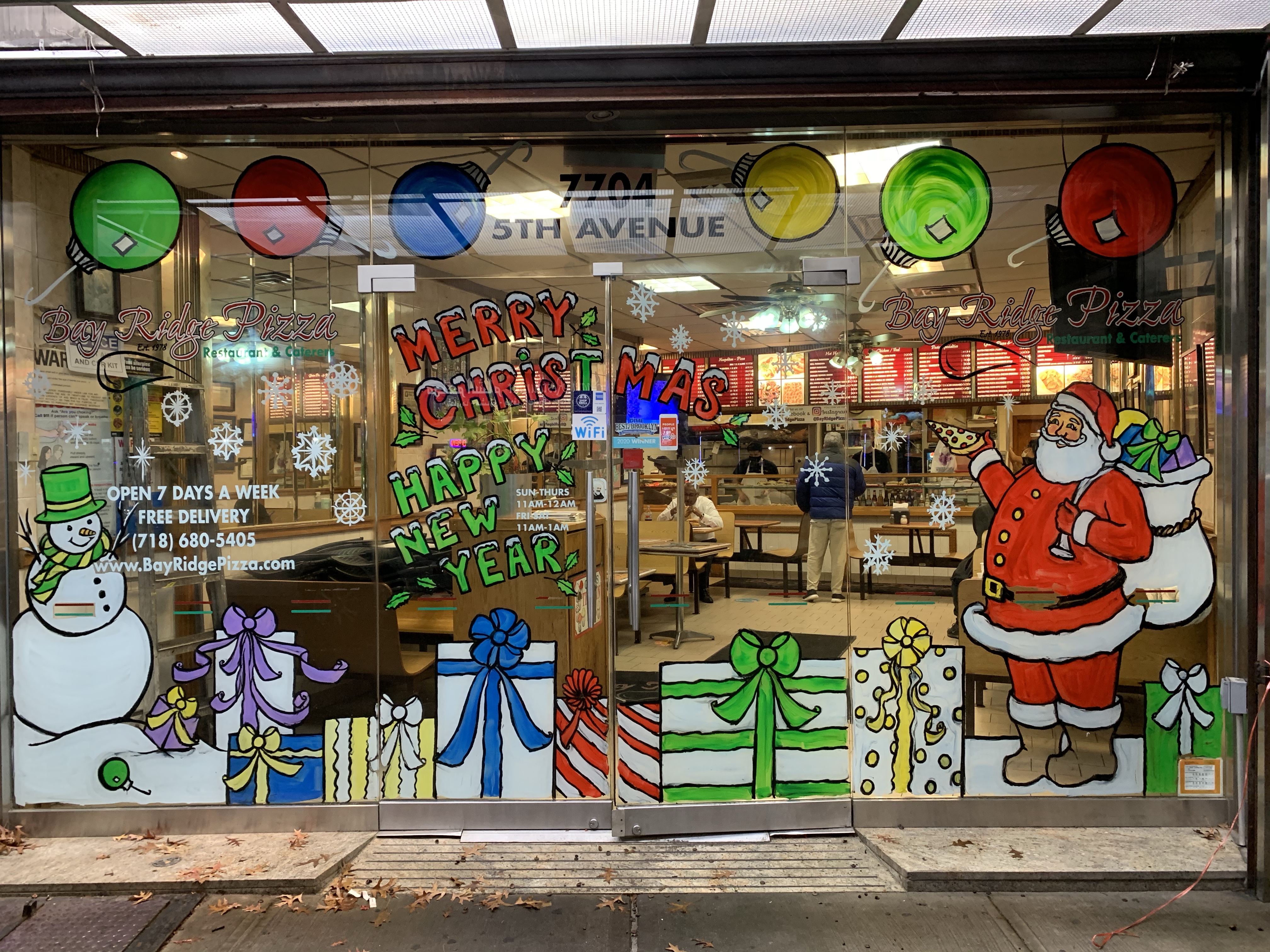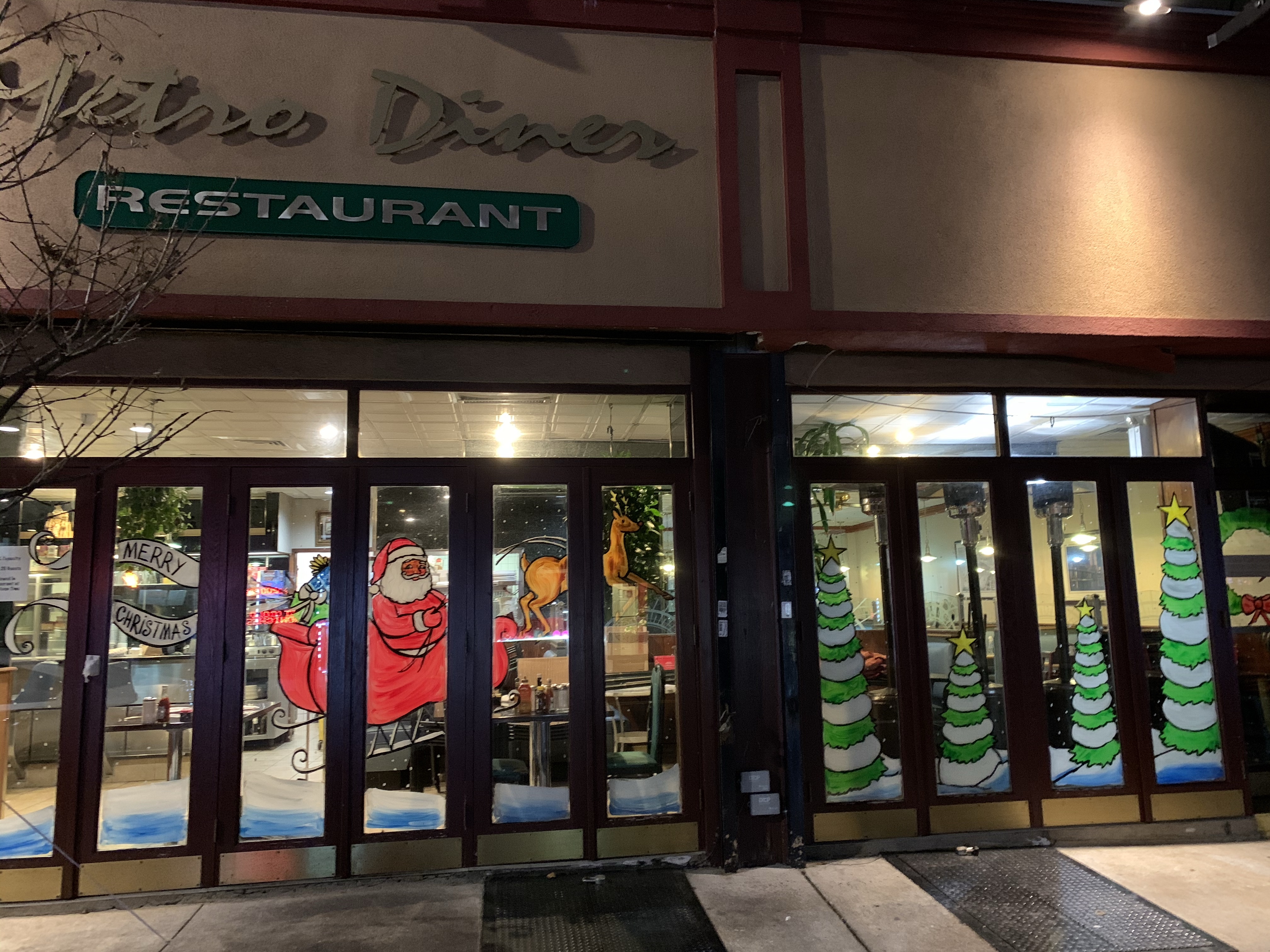 The owner of the court square diner originally said no windows this year because the mayor was going to shut down all indoor dining. “Why should I have the windows painted if I have no customers eating inside?” I said, “Ya, that makes sense to me. I see your point.” But then he said, “ You know what? Come and paint the entryway. People come through there to pick up food.”