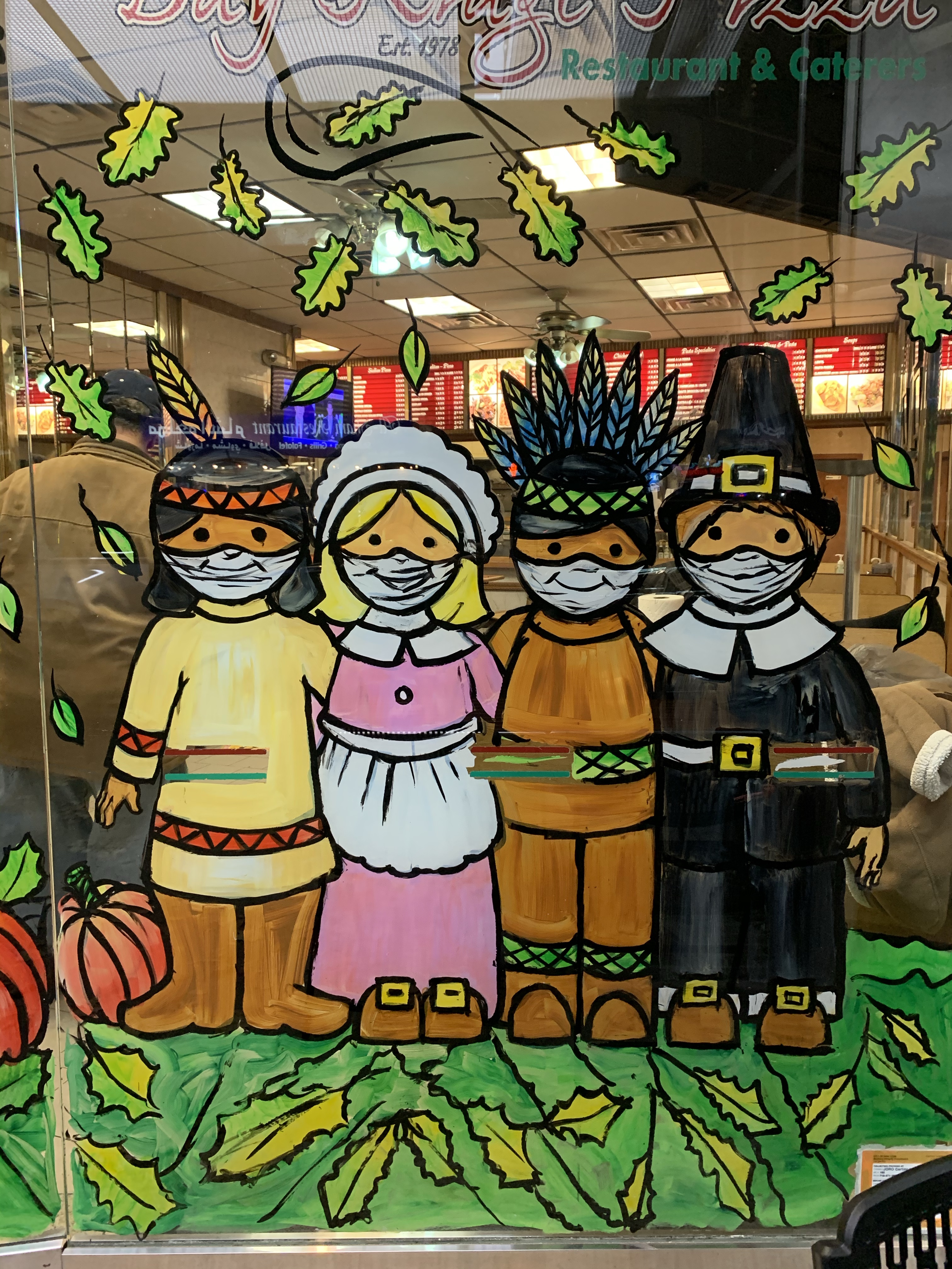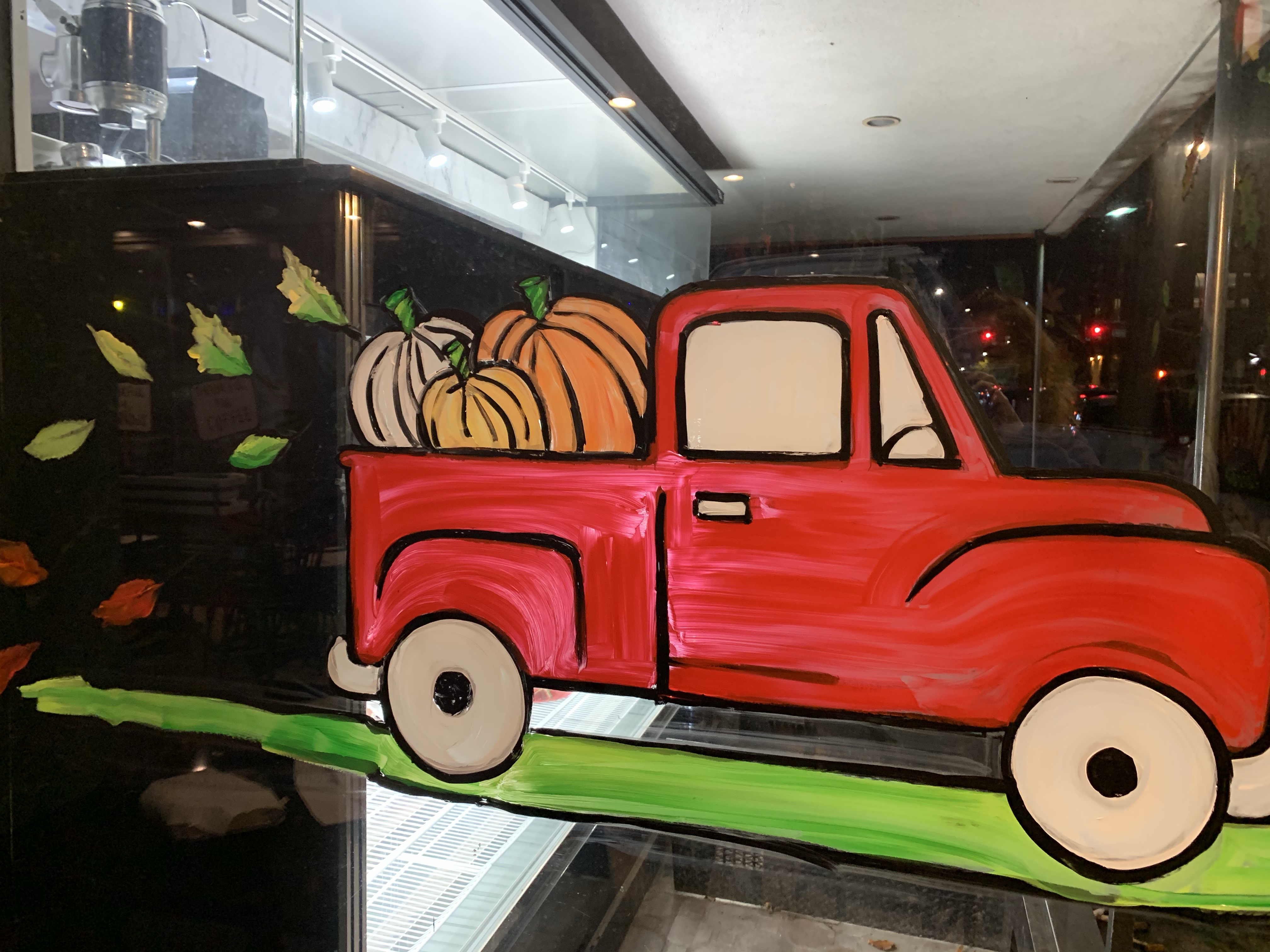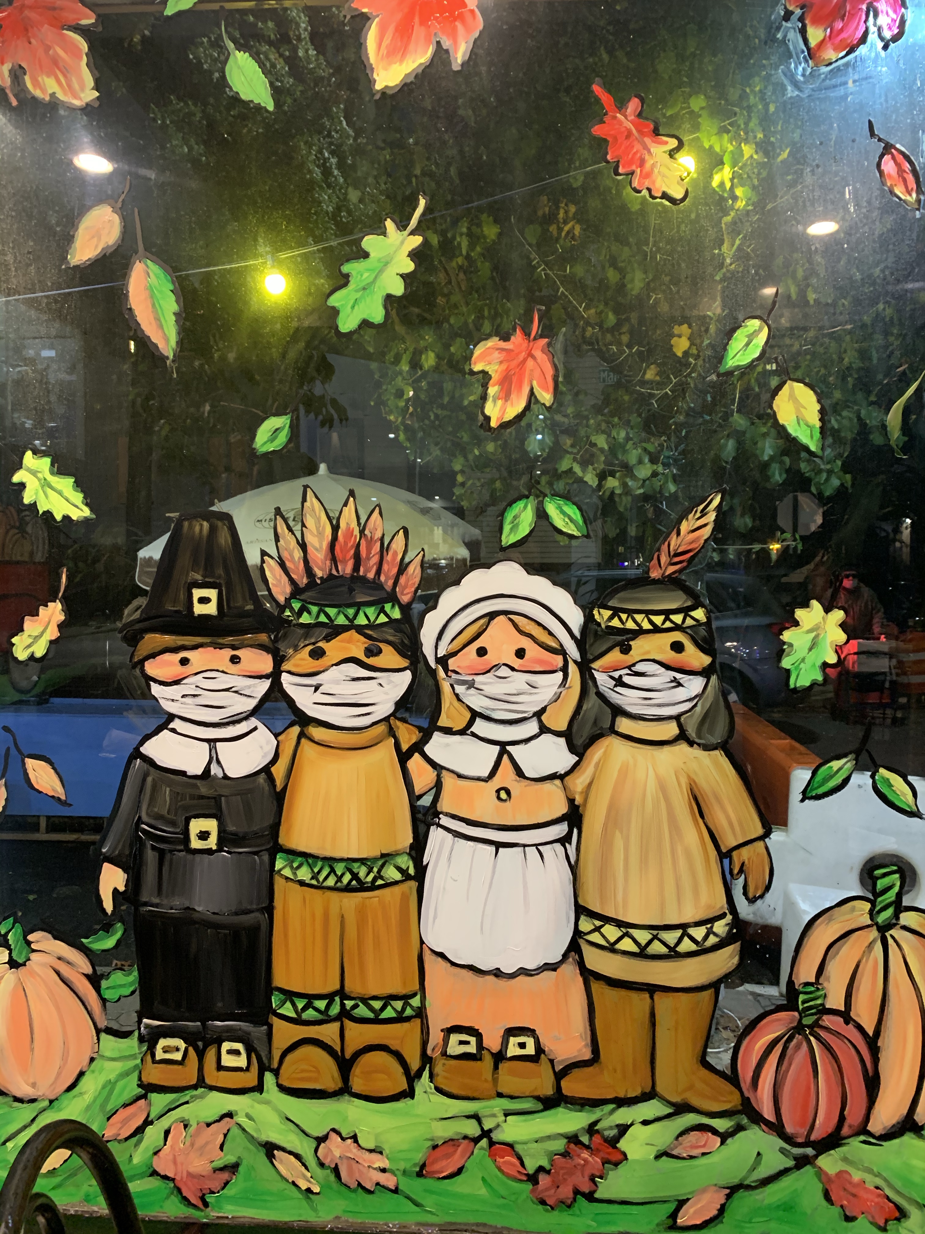These are the the Thanksgiving windows I painted at Fortunatos Pastry Shop.