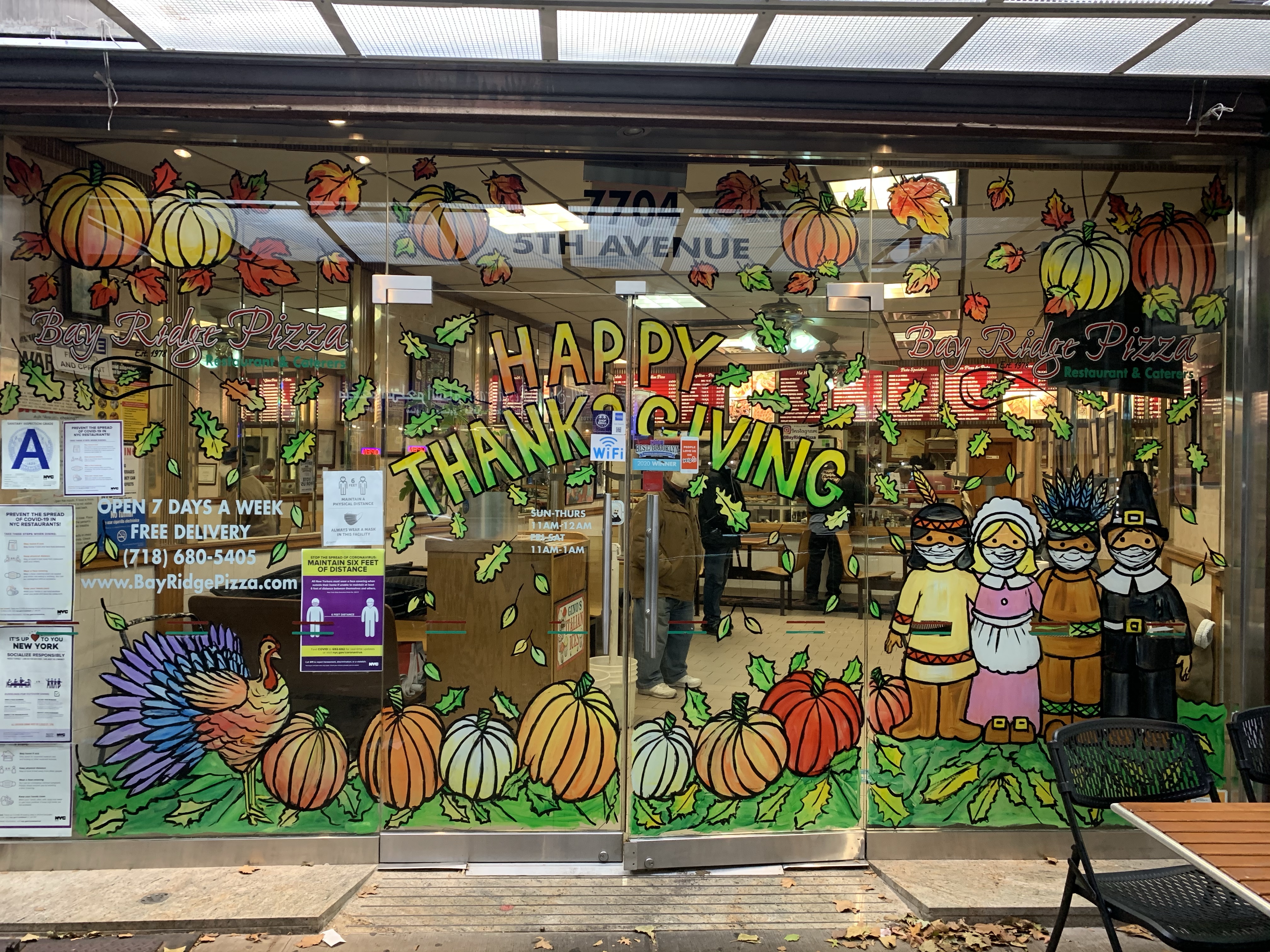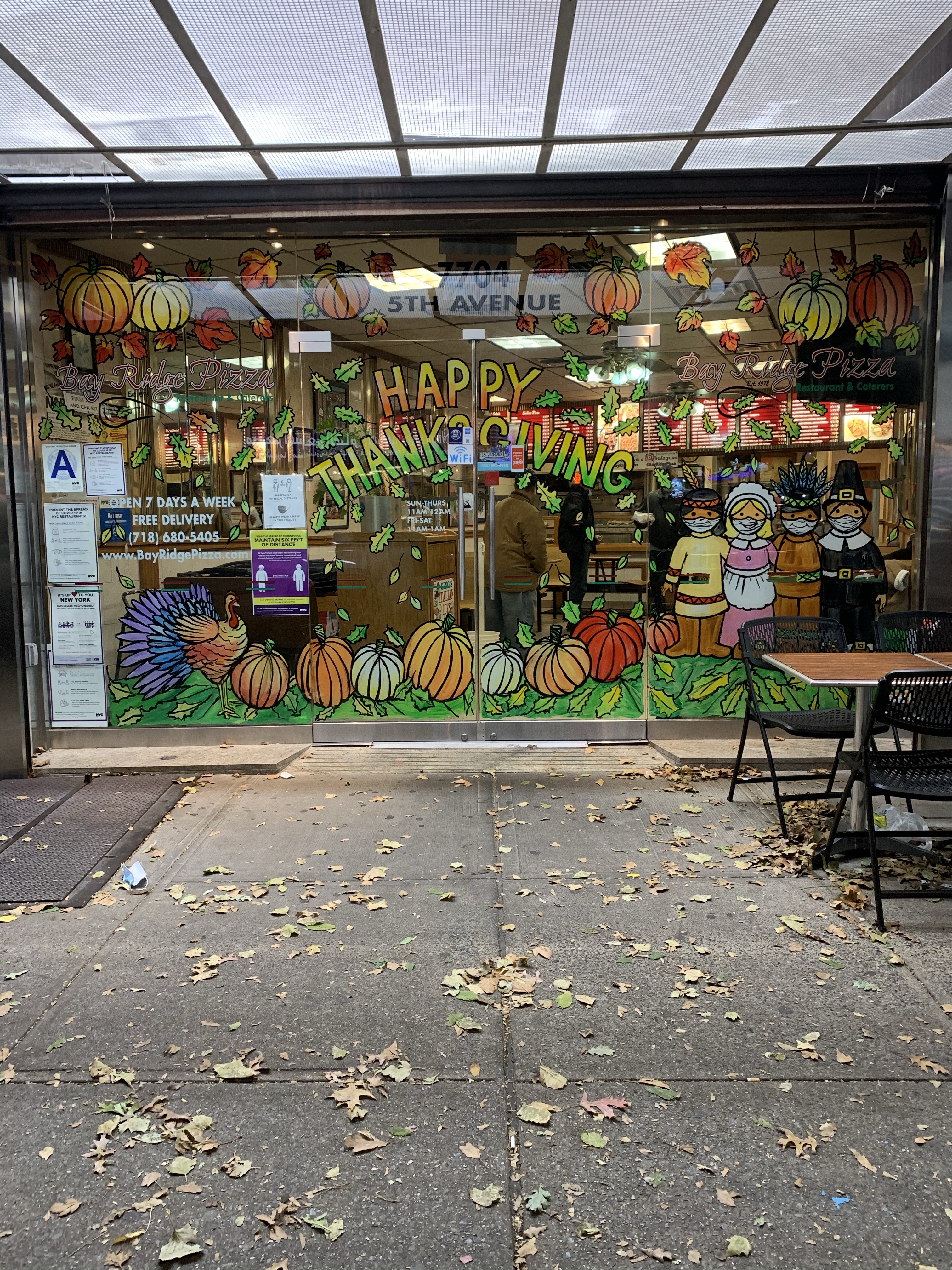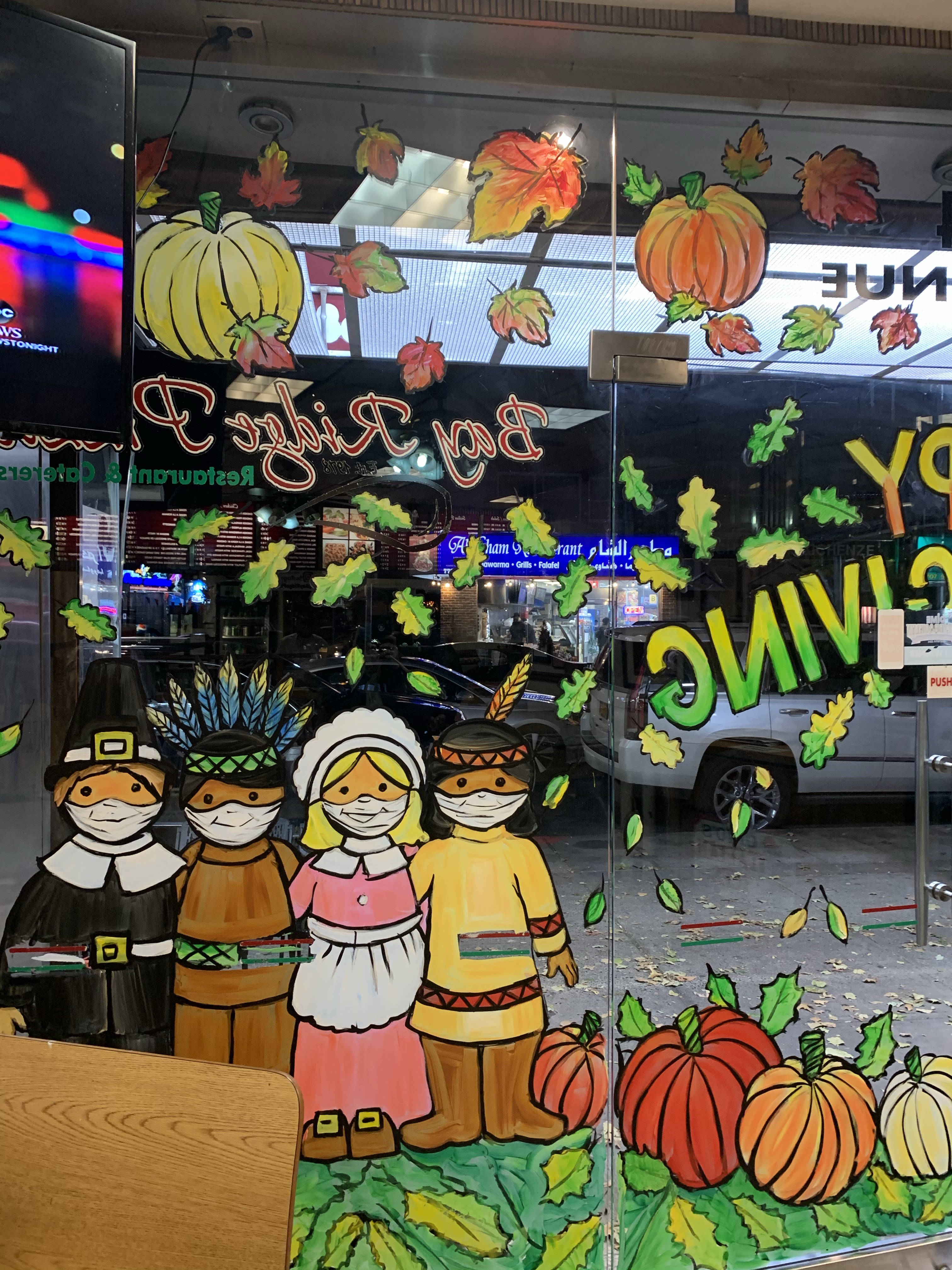 I painted Thanksgiving windows for these two clients. Below are windows at Bay Ridge Pizza in Bay Ridge, Brooklyn and Fortunatos Pastry Shop in Williamsburg, Brooklyn.