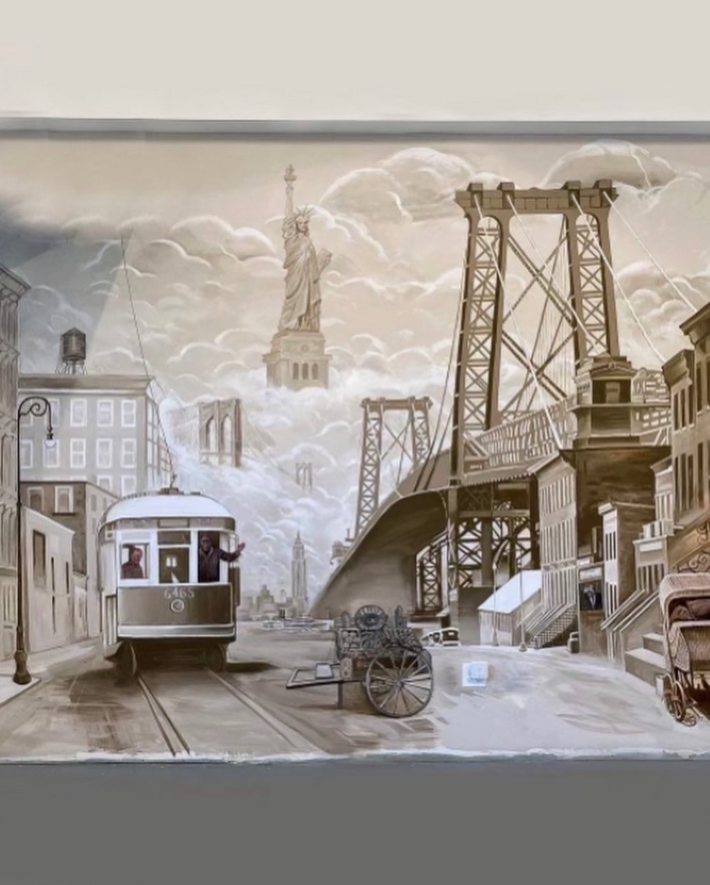 No doubt this is where the producers of Blue Bloods heard about the mural. In April I received a call from the Monsignor of the church and he gave me a number to call telling me that the producers at CBS needed me to sign a consent form before they filmed in front of it.